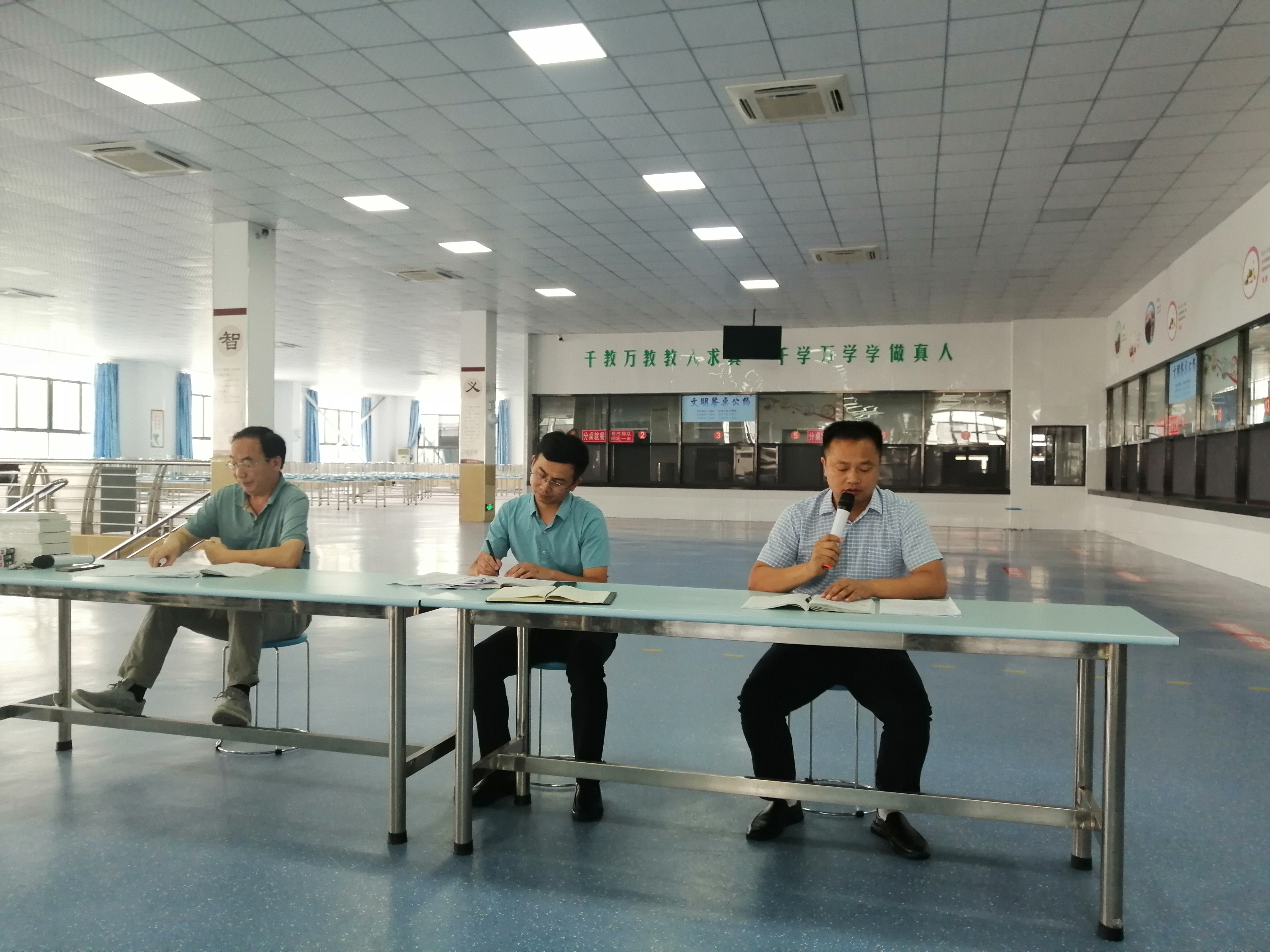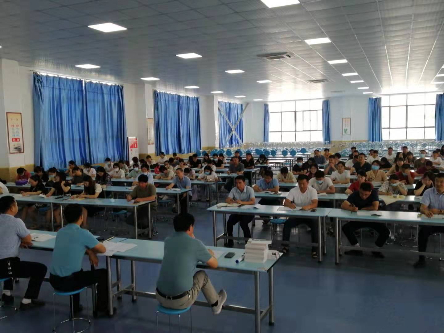 本网讯 8月22上午,初中部全体教师及班主任近100人,集中在学生大食堂餐厅二楼,召开迎接2021~2022学年度开学暨2021-暑期全员培训启动大会。