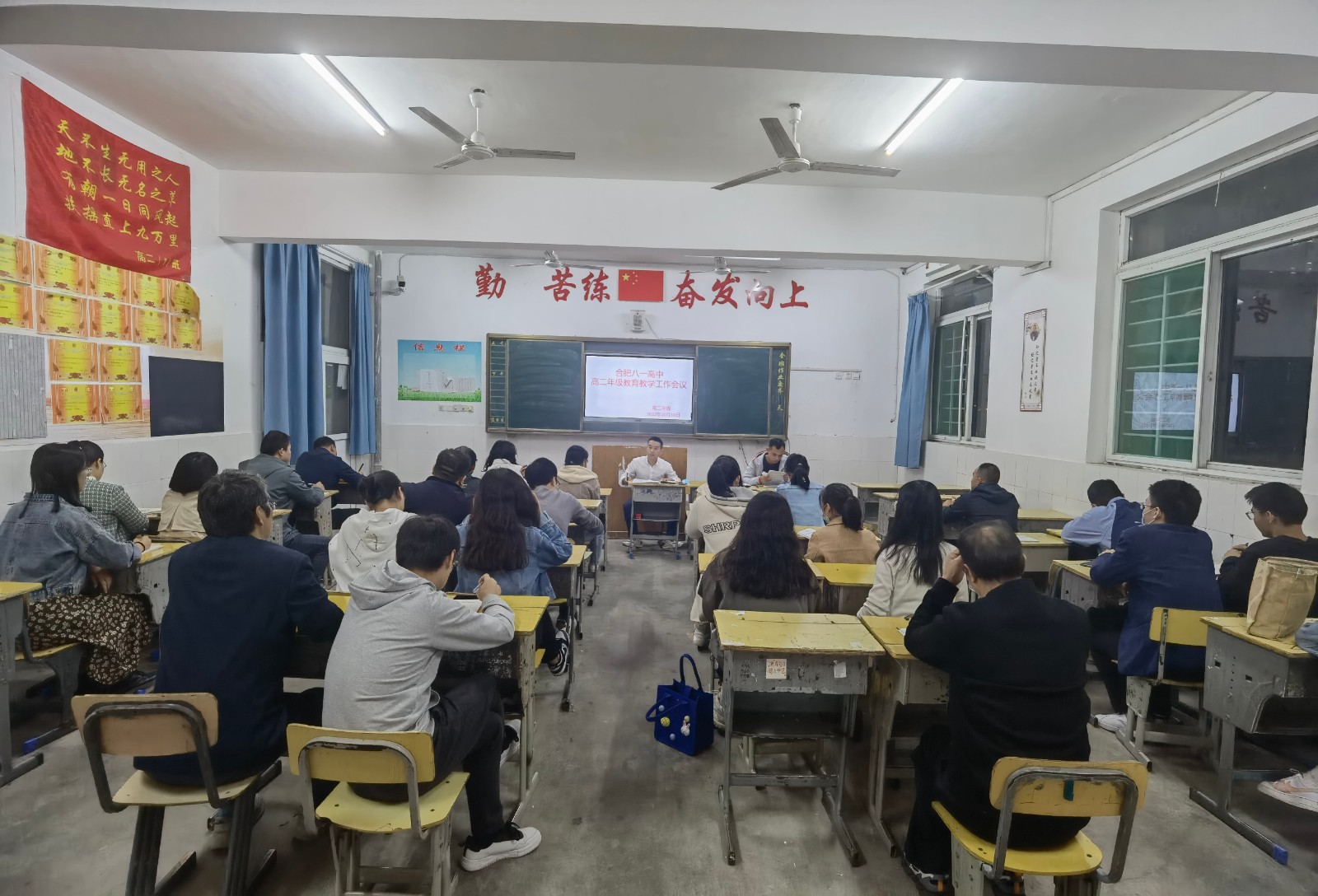 10月18日晚第 一 节晚自习,高二年级在日语教室召开教育教学工作会议,高二全体教师和班主任参加了这次会议。