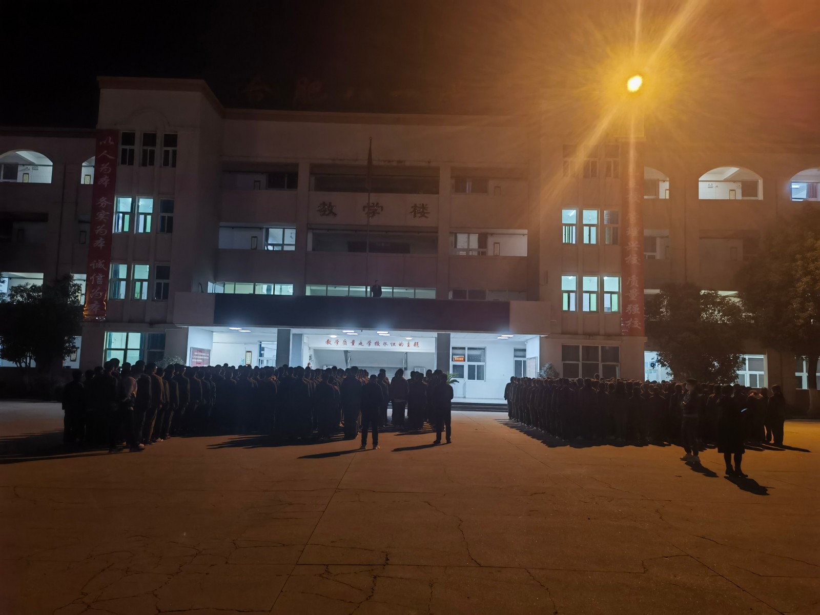 随着疫情的结束,八一学校恢复了线下教学,高二年级今天早上11点前全部返校。晚上6点10分高二年级在教学楼前召开了返校教育大会,周康主任主持这次会议。