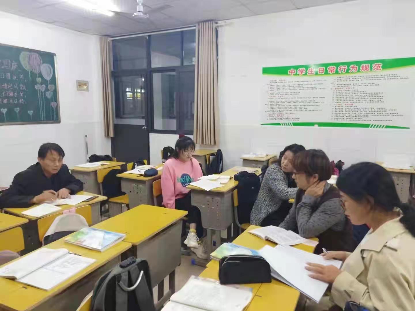 此项任务下达后,各班积极行动,选取不同时间,找到合适的地点,或在初中部会议室,或在本班教室,或在年级办公室积极展开。由班主任牵头,各班教学班主任配合,邀请本班授课教师,进行认真讨论分析。会上各位老师主要分析班风学风、少数学生沟通困难、学习目标任务完成情况等,再根据本班学生的学情,分析教学中的得与失,以及后期要改进的具体措施,大家各抒己见,提出自己的见解和方案,共同探讨更符合新课改的教育教学行为。