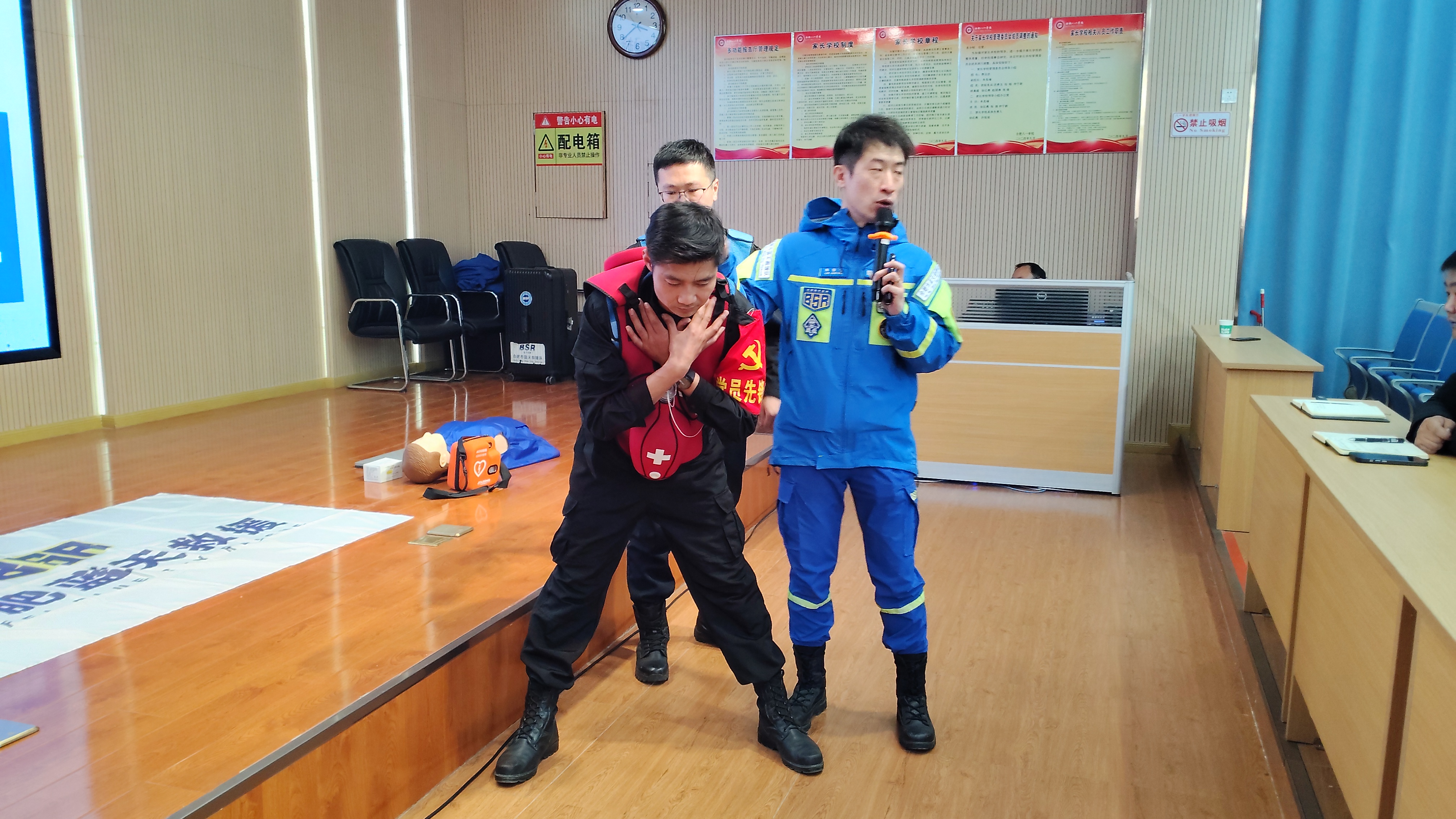 救援队讲师以生动的语言和专业的示范,向大家详细讲解了止血、包扎技术,骨折与扭伤处置,心肺复苏和AED使用等急救知识和技能,并现场演示急救法的操作方法。参训人员借助模拟人教具和AED训练机设备,练习了胸外按压的力度与频率、开放气道的规范动作、AED电极片贴放位置等关键步骤,掌握了正确的急救手法和流程。